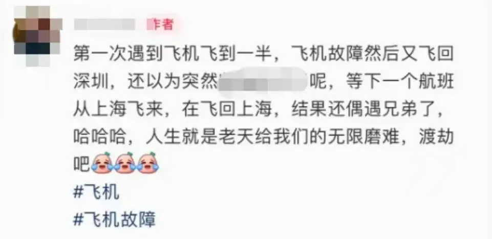 经查询,4月14日晚间,吉祥航空HO1790航班从深圳宝安国际机场起飞后,因故障紧急返航,航司第一时间启动应急处置程序,妥善安置旅客并完成补偿,后续航班顺利抵达目的地。