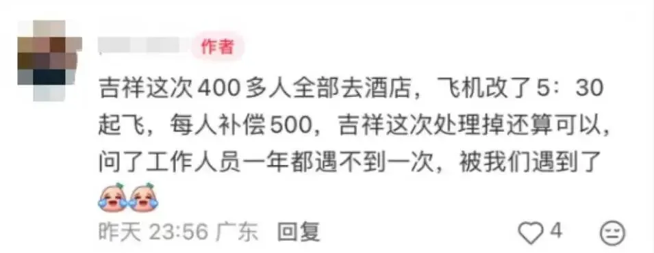 事件发生后,吉祥航空迅速响应,将该航班取消并启动旅客安置方案,为旅客提供住宿、餐食等保障,同时给予每位旅客500元补偿。针对旅客退票、改签需求,航司开通相关通道,支持旅客在购票平台或通过客服办理相关手续,部分旅客因第三方购票遇到的改签问题,经沟通后也得到妥善解决。