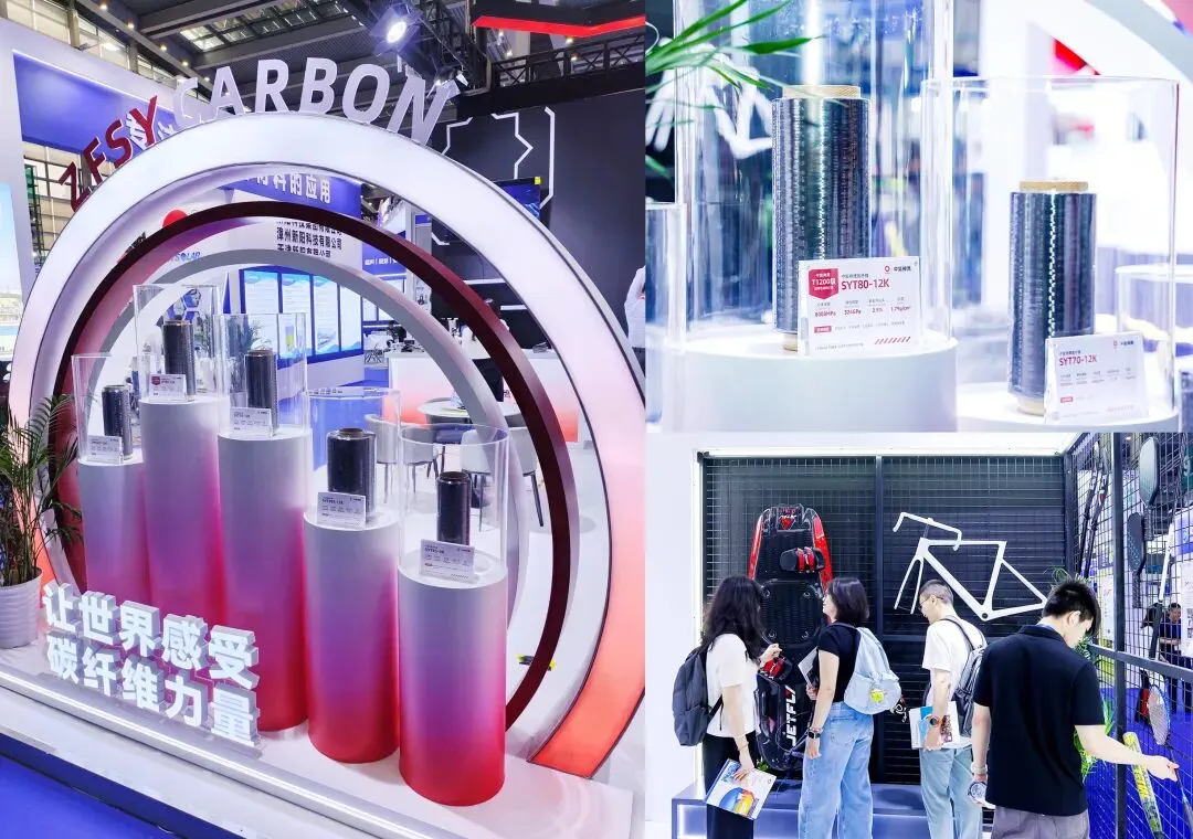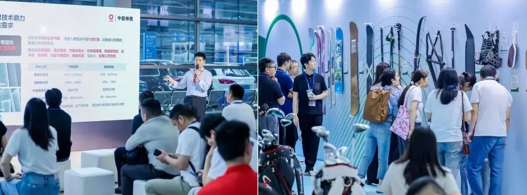 全民运动风潮的持续升温,让体育器材制造商对高性能碳纤维的需求从“可用”向“好用”进化。碳纤维以轻质高强的核心优势,为体育器材的轻量化、高刚性、高耐久性提供了关键材料支撑。中复神鹰在本届展会创新推出先进复材体育装备展区,现场营销及技术团队演示产品性能、解读应用场景,吸引海内外客户驻足咨询、洽谈合作,进一步扩大了中复神鹰品牌的行业影响力。