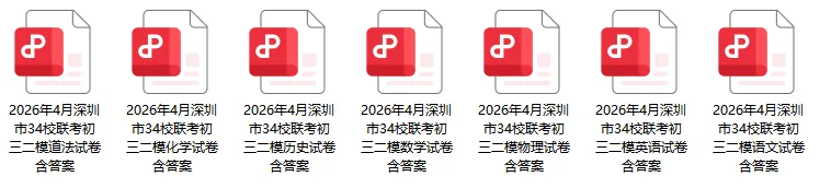 今天给家长同学们收集汇总了深圳34校初三联考二模(4月14-15日),全科真题及答案~34校联考学校(仅供参考):翠园、翠园东晓、桂园中学、深二实初中部、东湖中学、翠园文锦、翠园实验、罗外实验、罗未、滨河实验、龙创实验、龙岗区外国语集团、平安里学校、省实深圳、智民实验、深大附、龙岭初级、承翰、深大附创新、侨香集团、笔架山中学、北大附梅山、深大附中、深大附外、坪山实验、坪山外国语、坪山文源、葵涌中学、盐田外国语、云海学校、田东学校、光外等。