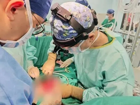 传统冠脉搭桥手术中,取用大隐静脉通常需要在腿部做一道长切口,创伤较大,尤其对糖尿病患者而言,伤口愈合不良的风险较高。本次手术团队采用腔镜技术取用大隐静脉和左侧桡动脉,在下肢和上肢分别仅做2处约2厘米的小切口,便完整取出所需血管。