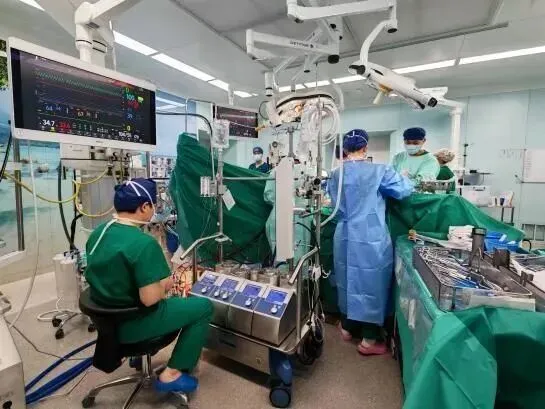 在手术过程中,团队持续监测脑血氧饱和度,并放置漂浮导管精细监测肺动脉压,随时掌握患者的血流动力学状态,确保手术安全推进。