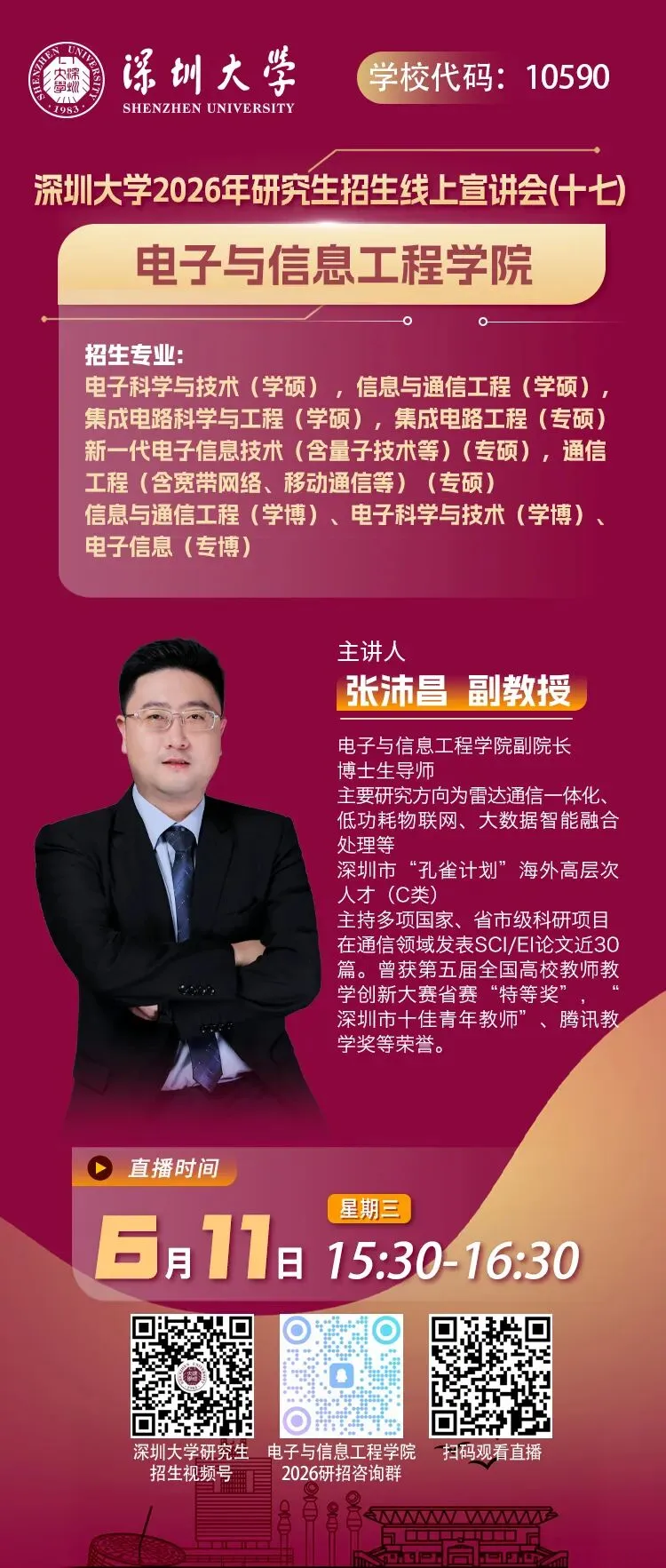 当前,深圳大学积极服务粤港澳大湾区和深圳先行示范区建设等国家重大战略需求,坚持文化引领,强化创新驱动,追求内涵发展,加快创建世界一流综合性大学、打造新时代中国特色社会主义标杆大学而努力奋斗!