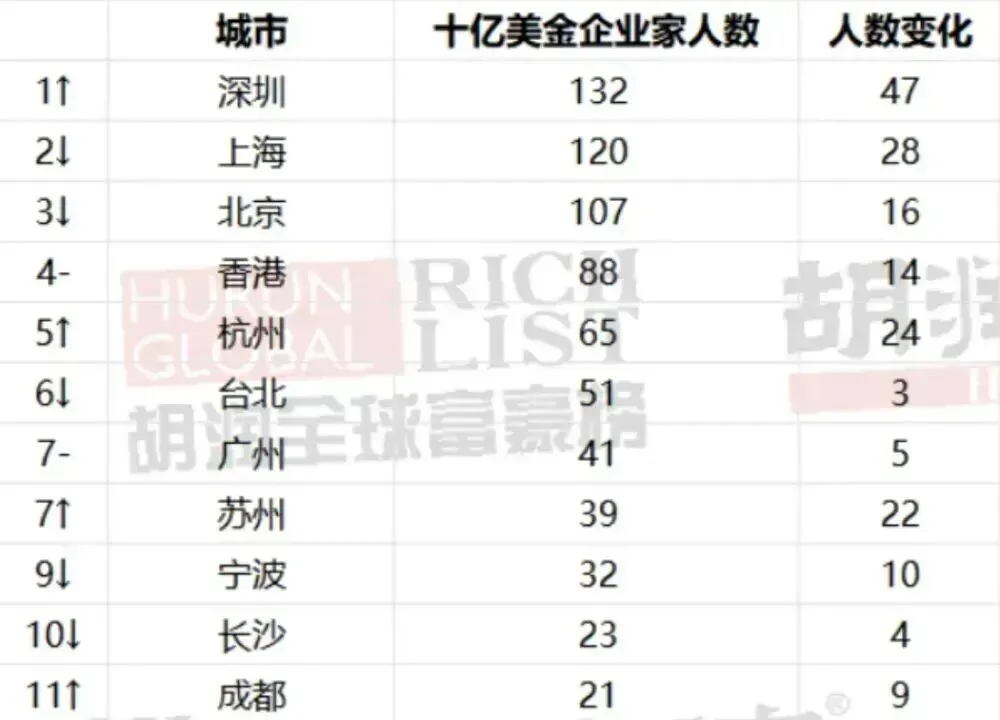 财富创造,全国第一。刚刚发布的《2026胡润全球富豪榜》显示,深圳拥有132位十亿美金企业家,数量首次超越上海,位居中国第一。