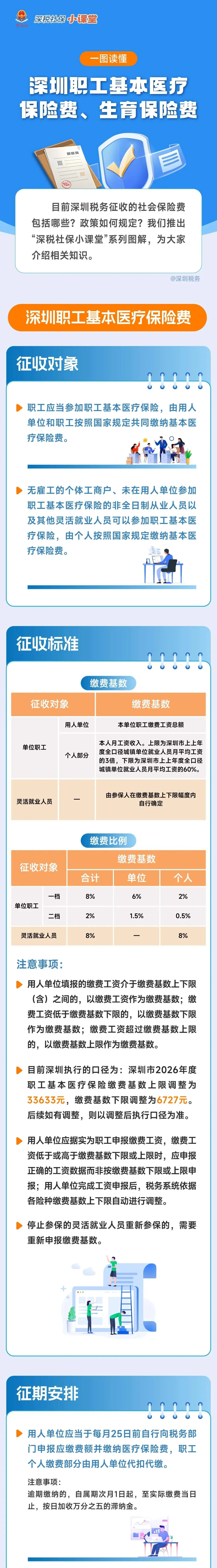 >深税社保小课堂丨一图读懂深圳职工基本医疗保险费、生育保险费