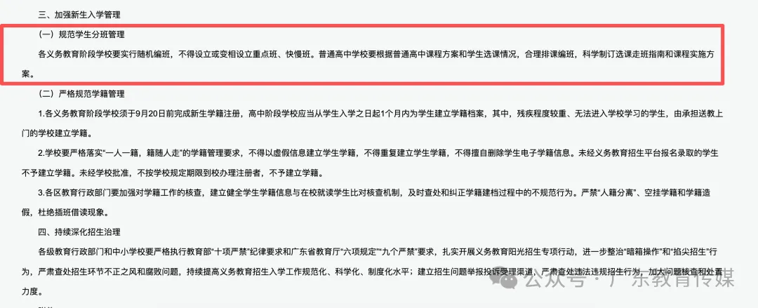 深圳也在《深圳市教育局关于做好2025年普通中小学招生入学工作的通知》中提出,各义务教育阶段学校要实行随机编班,不得设立或变相设立重点班、快慢班。