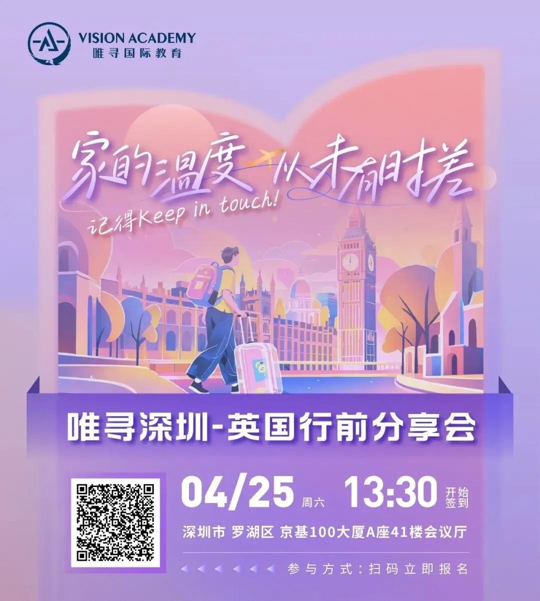 【到场福利】现场为每一组新生家庭提供精美行前物料礼包,包含《2026留英新生百宝书》、随身充电宝、唯寻国研究生申请指南等。