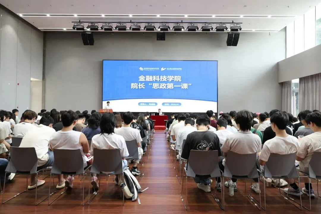4月15日,金融科技学院“思政第一课”在粤海校区校友广场开讲。学院院长陈海强教授以“建设科技-产业-金融有机循环的科技金融体系”为主题,为2024级金融科技专业与2025级大数据专业的190名同学带来了一场兼具思想深度与前沿视野的精彩授课。