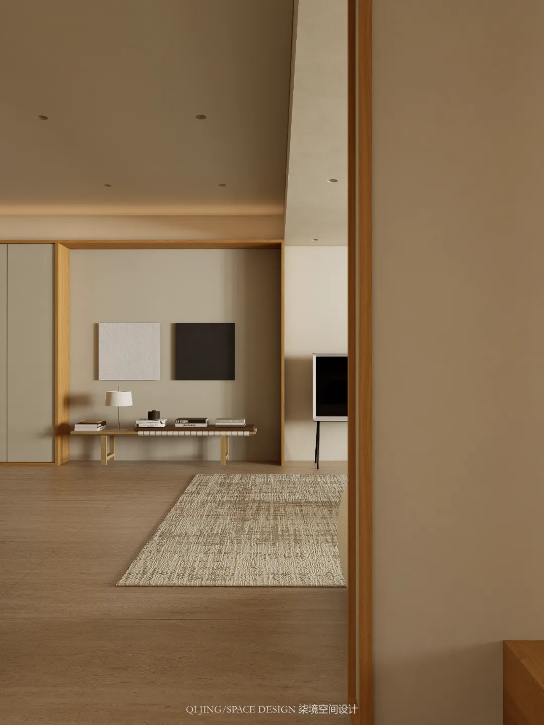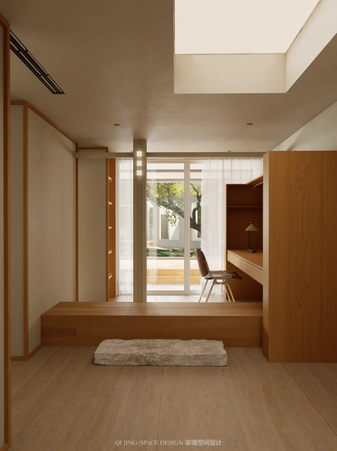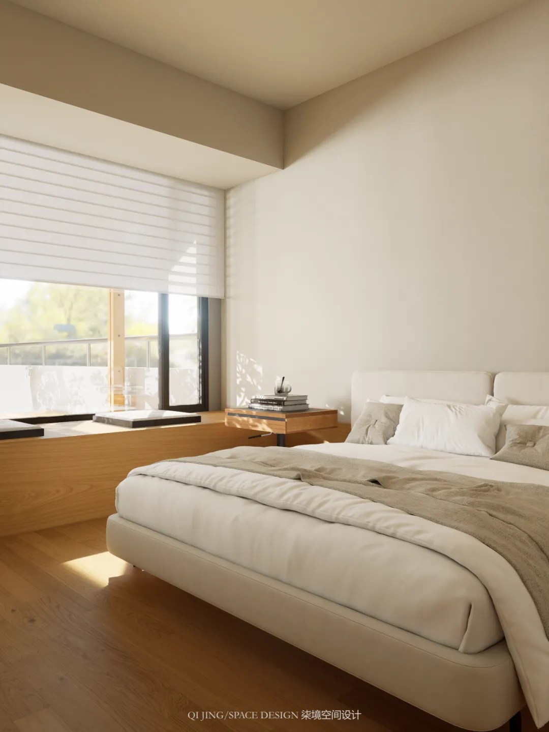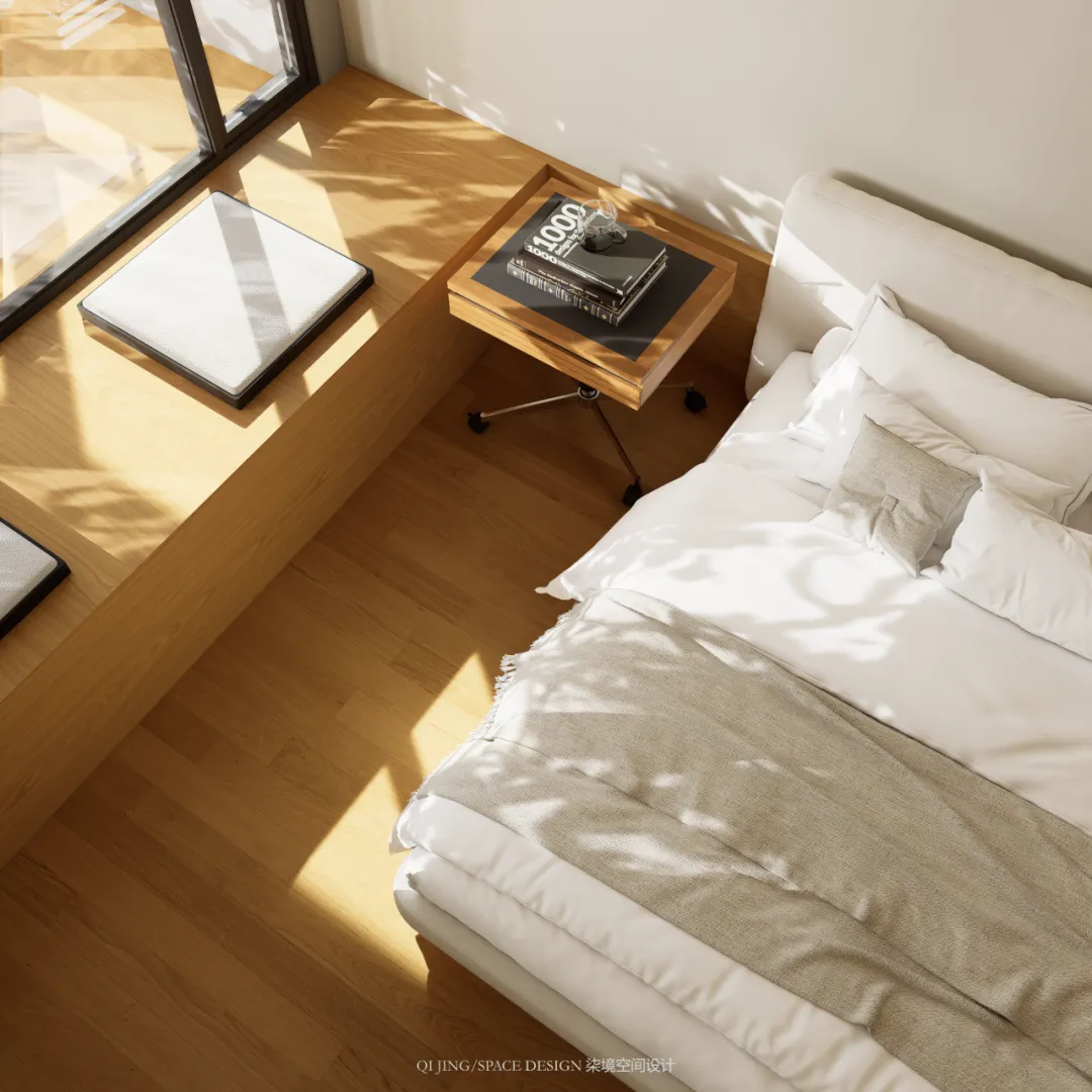 没有冗余的装饰,只有木质的温润、棉麻的柔软,与光影的低语