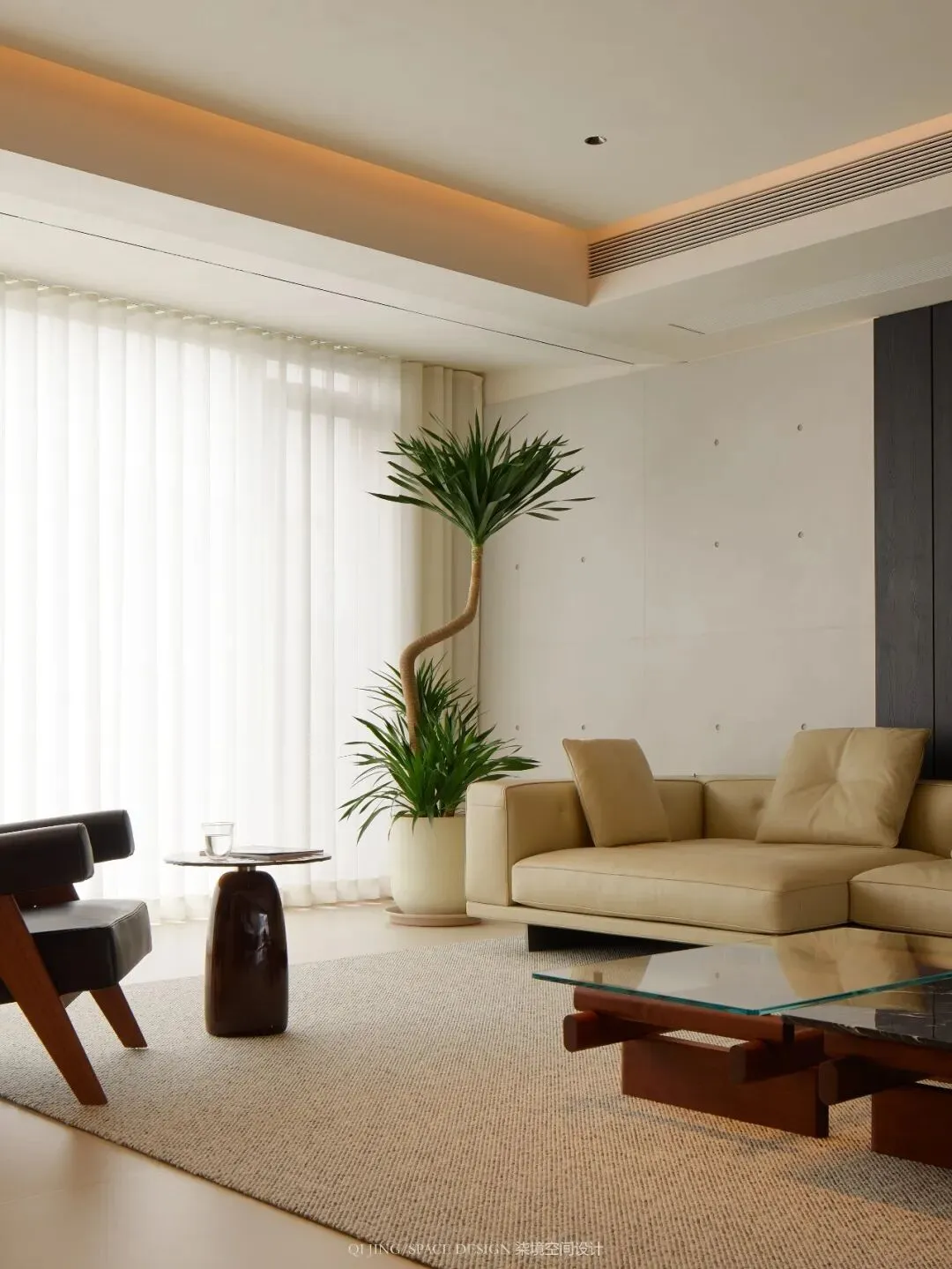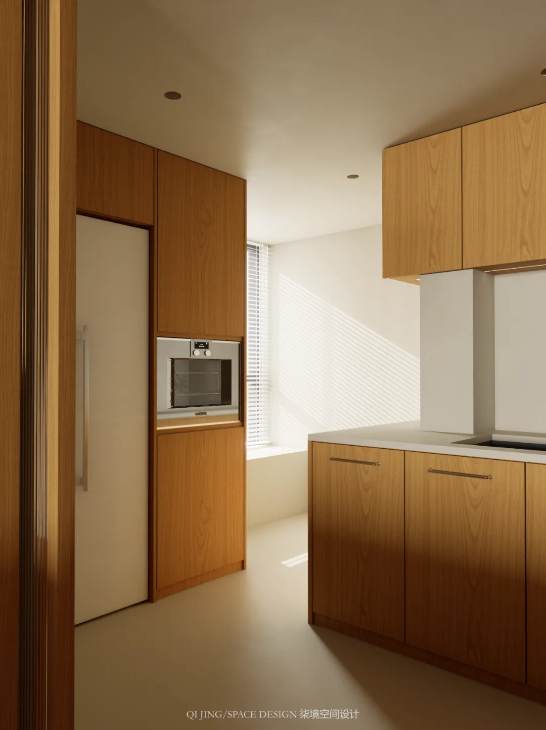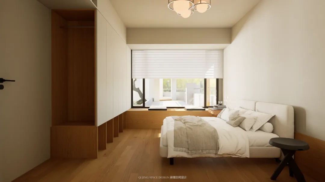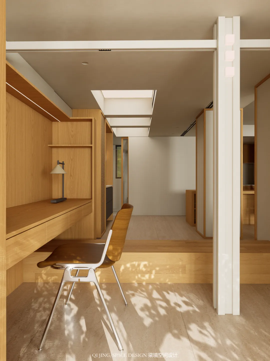 没有冗余的装饰,只有木质的温润、棉麻的柔软,与光影的低语