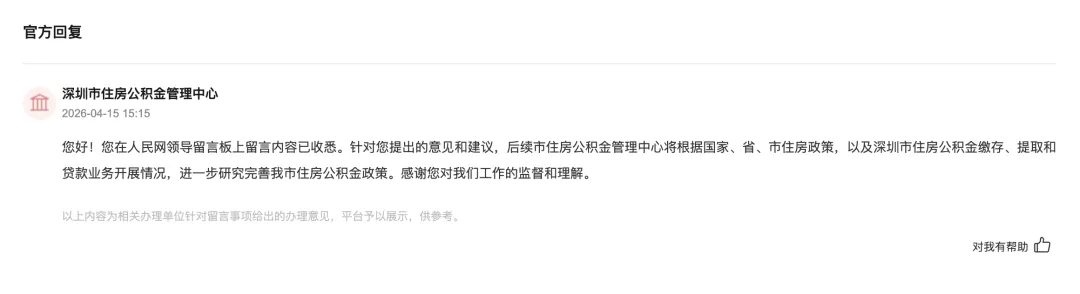 信息综合自:人民网领导留言板、新华网、央视新闻、深圳市住房公积金管理中心等