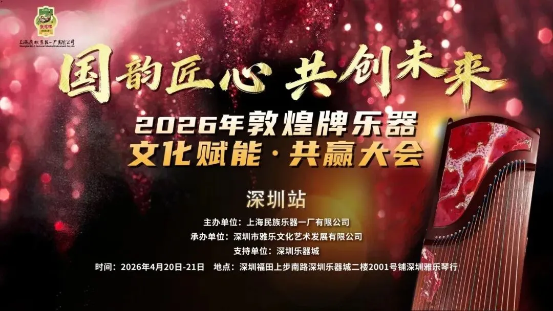 在科技与时尚交织的深圳,一场传承国韵、共话匠心的民乐盛会即将启幕!4月20 - 21日,由 深圳市雅乐文化艺术发展有限公司 承办的2026国韵匠心・共创未来 —— 敦煌牌乐器文化赋能共赢大会 深圳站 将落地 深圳乐器城。