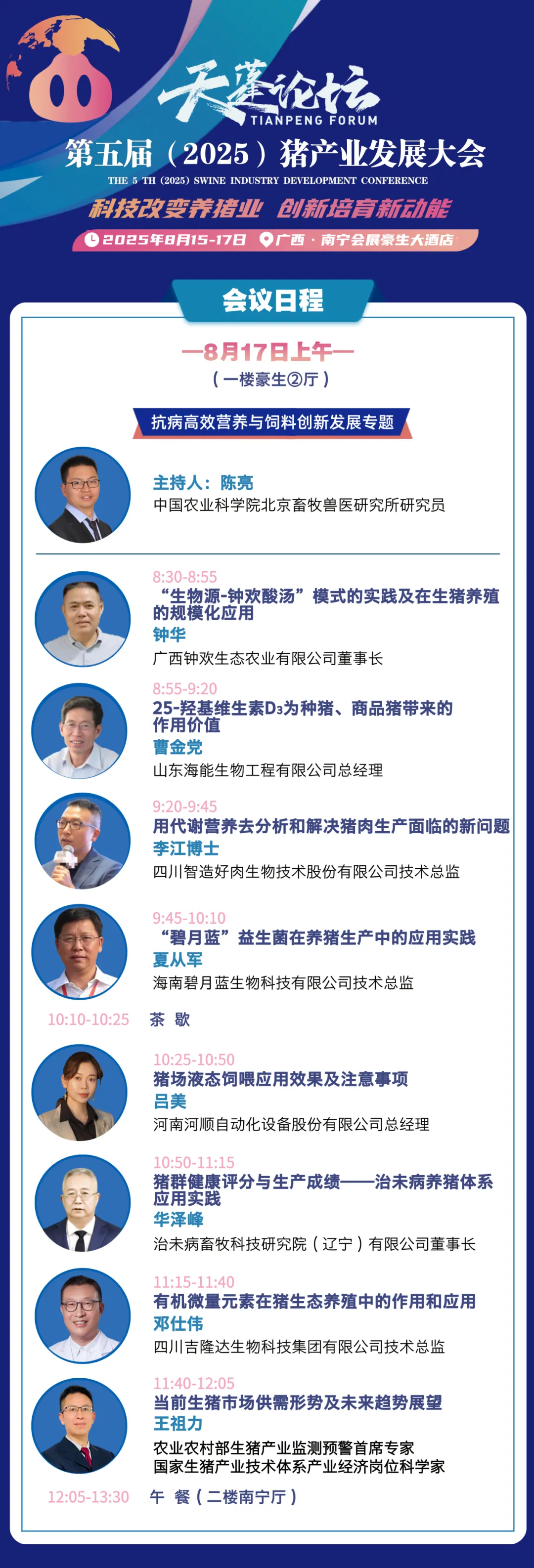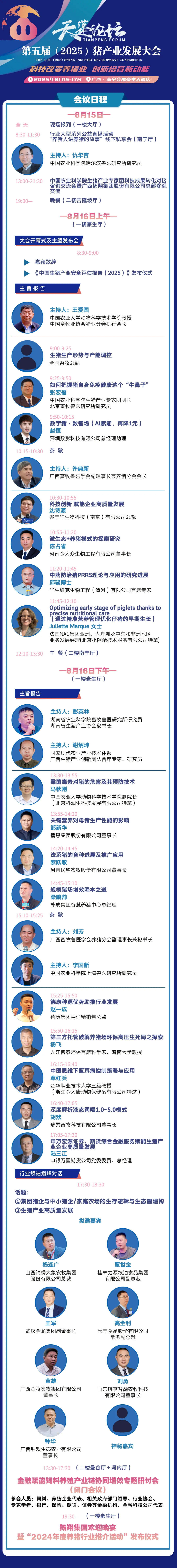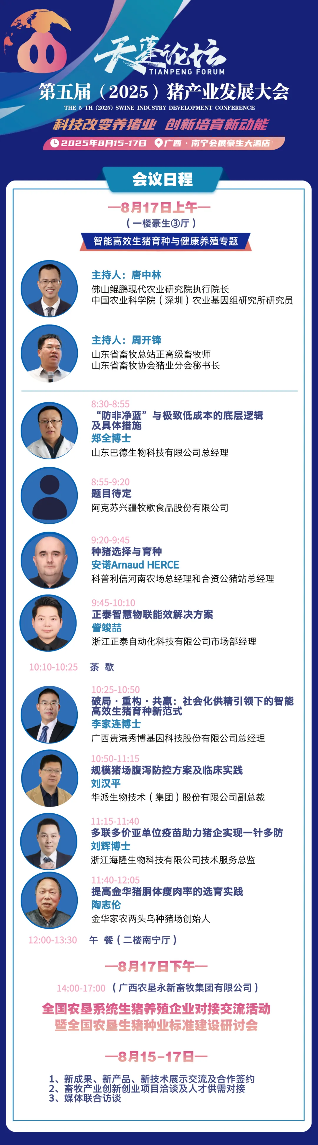 热烈欢迎广西扬翔集团股份有限公司作为承办单位出席将于8月15-17日在广西南宁会展豪生大酒店举办的“天蓬论坛—第五届(2025)猪产业发展大会”!