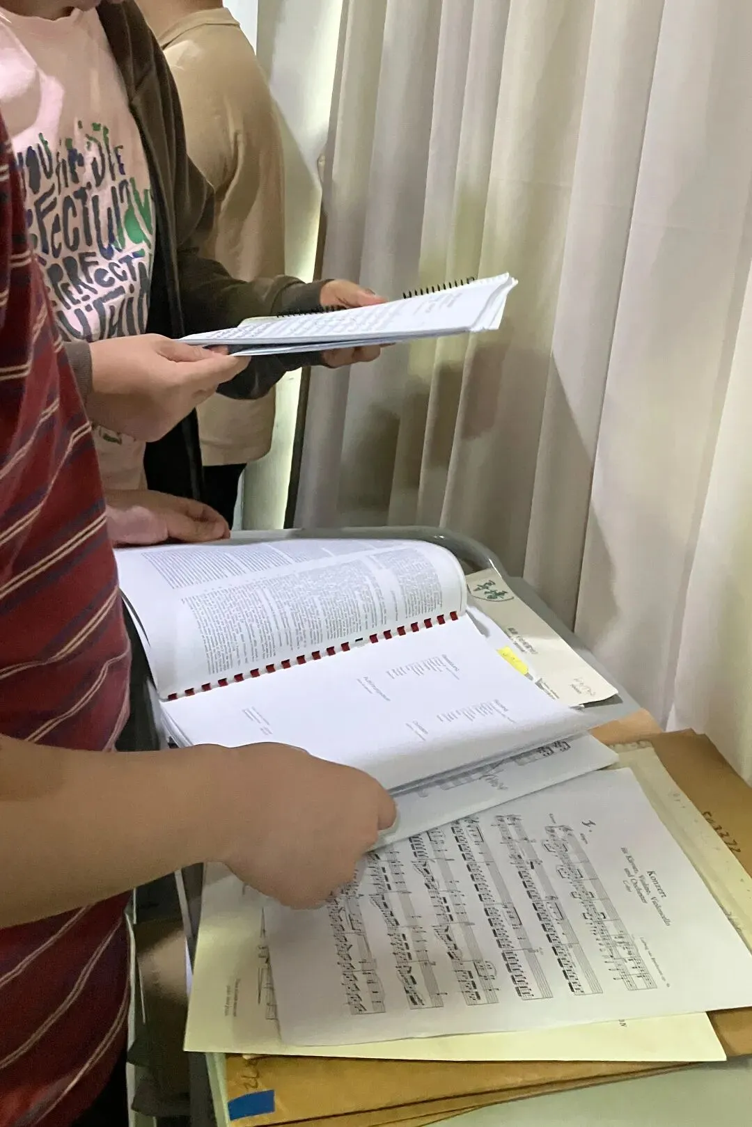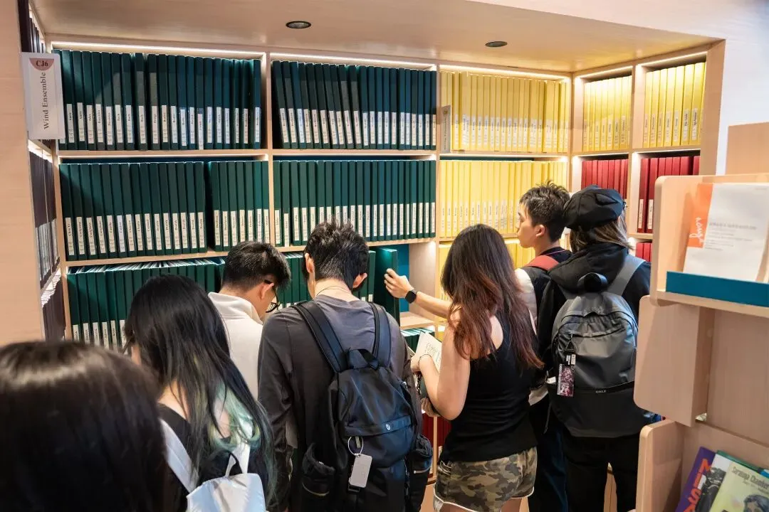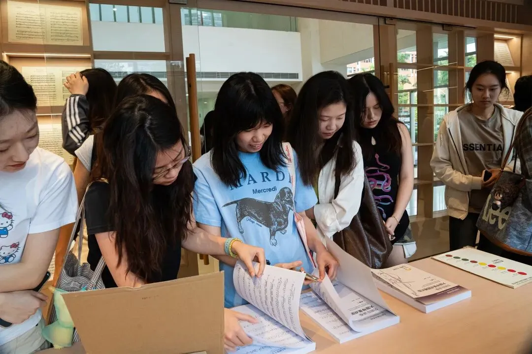 随后,同学们依次参观三楼录音室、室内乐排练厅及各声部专用琴房。行程最后一站为乐团档案馆,馆内以恒温恒湿标准妥善保存各类乐谱资料。杨主任介绍,谱务工作流程繁杂且至关重要,兼具专业性、严谨性与细致度,同时鼓励感兴趣的同学积极申请乐团暑期实习。