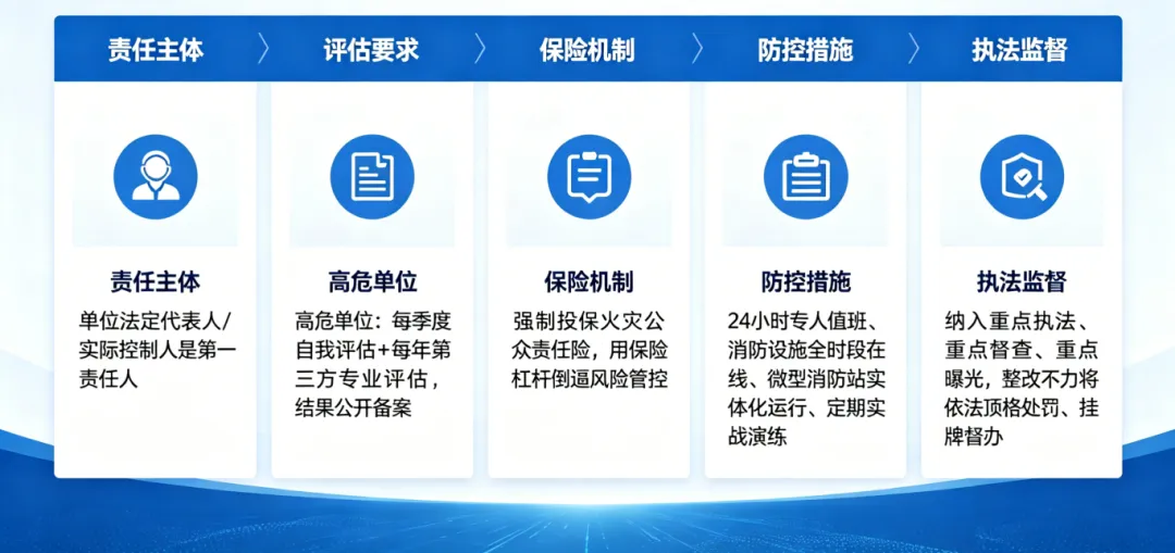 • 强制投保火灾公众责任险,用保险杠杆倒逼风险管控