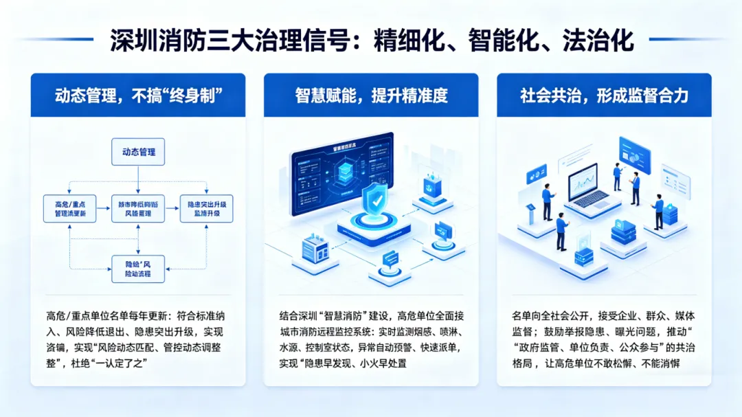 这不是一次简单的名单更新,而是深圳推进精准消防、分级管控、防消一体的关键一步 ——划定高危单位,就是把最危险的 “病灶” 找出来,为后续靶向治理、守住城市安全底线打下基础。