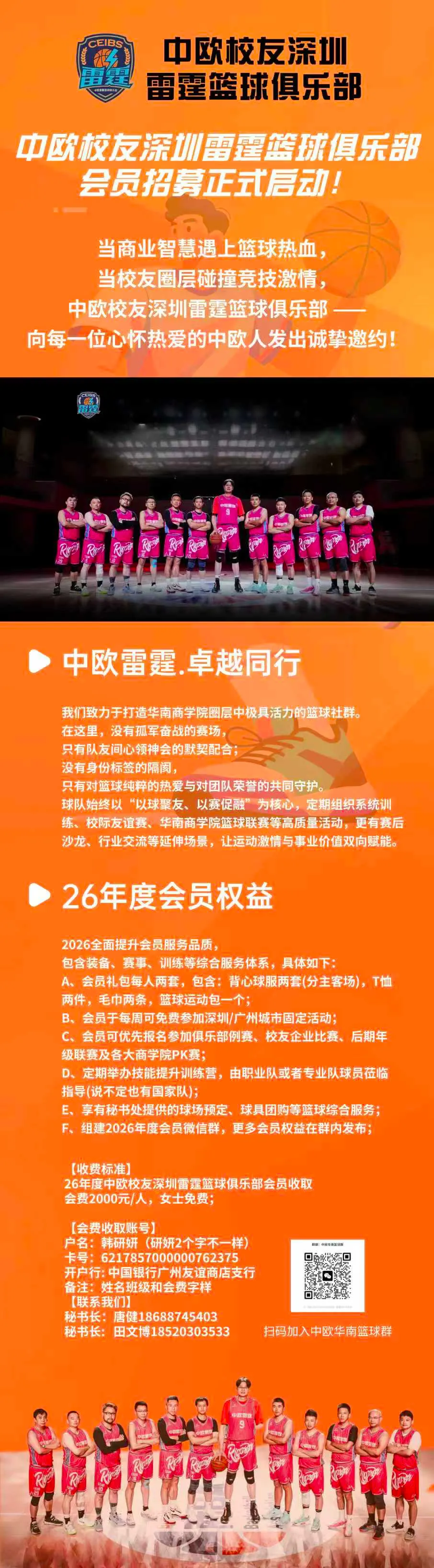本次活动由广东芝元堂生物科技有限公司冠名支持。据悉,雷霆篮球俱乐部未来将定期组织训练、比赛及交流活动,诚邀更多热爱篮球的中欧校友加入,以球会友,共享运动激情。