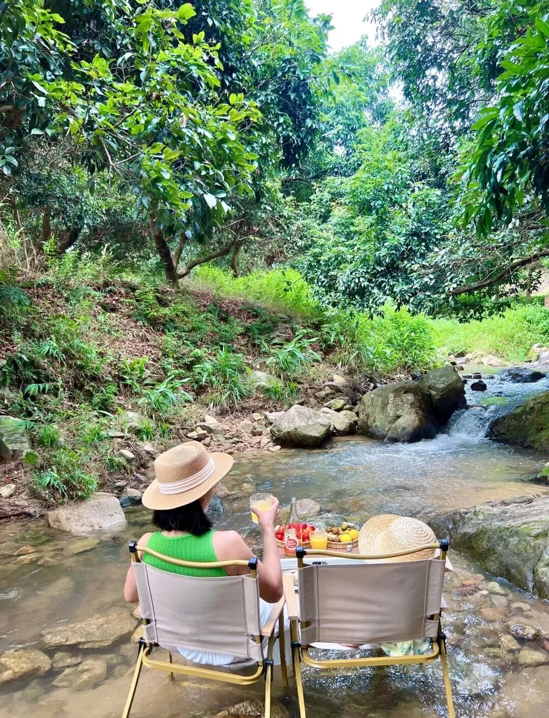 交通我帮你们整理得明明白白,全程不绕路,新手也能轻松拿捏。公共交通首选地铁7号线,在深云站C口出站。不想走路的朋友,出站后搭乘B742路公交,两站直达公园门口;偏爱悠闲氛围的,扫一辆共享单车,骑行约10分钟,沿途感受深云村的烟火气,治愈感满满。自驾的朋友直接导航同在茶空间,车辆可驶入园区停车场,入口就在茶室旁的木栈道,顺着水声走,1分钟就能邂逅瀑布,对懒人极度友好。