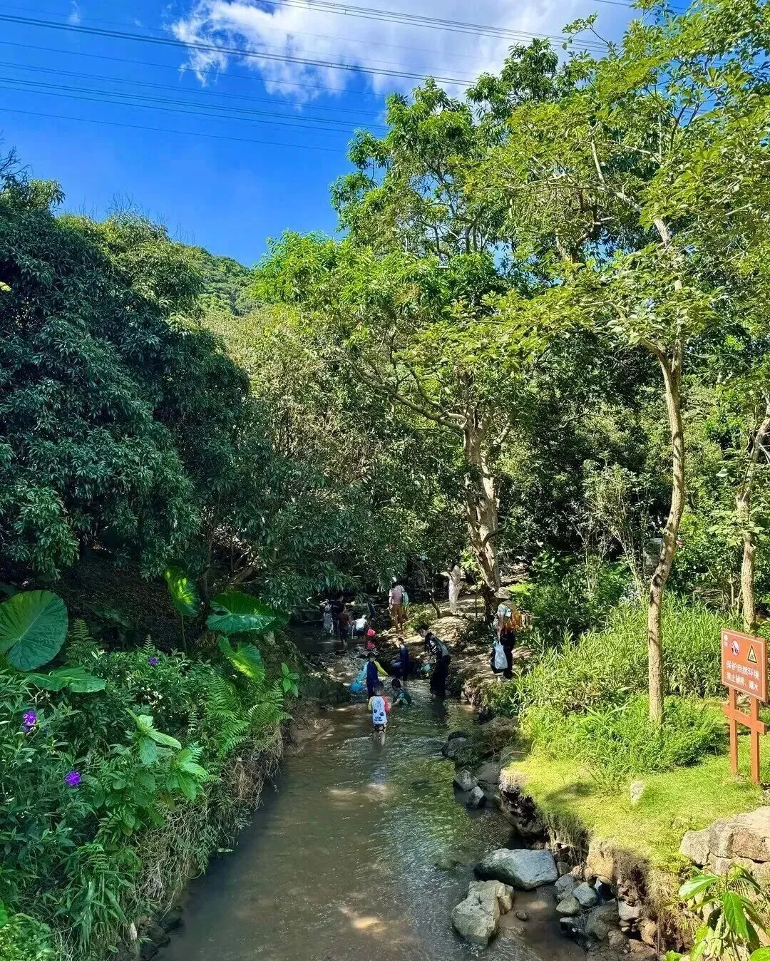 从瀑布旁的栈道向上步行约5分钟,就到深云谷溯溪秘境,溪水清澈见底,鹅卵石清晰可见,夏天来这里踩水嬉闹,清凉又惬意。继续向上攀登抵达极目阁,站在观景台俯瞰,深圳山海城景观尽收眼底,开阔的视野带来极致满足感,发朋友圈轻松收获满屏点赞。