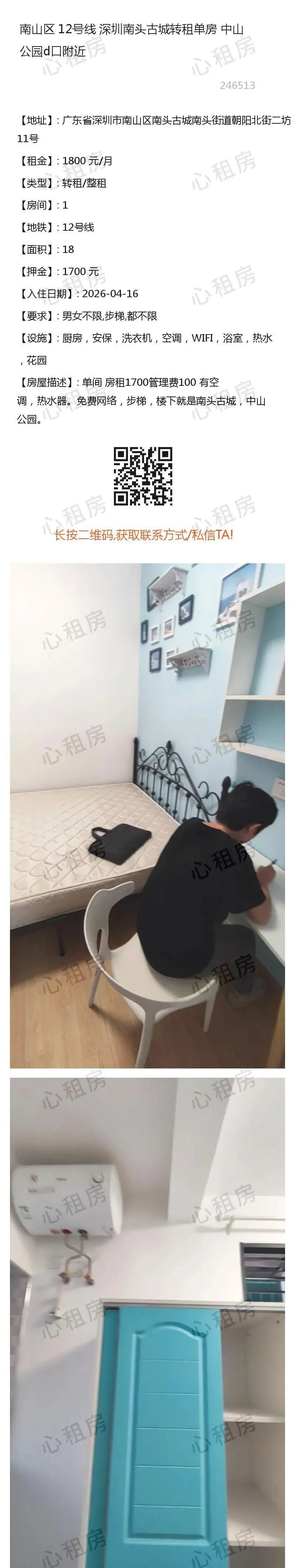 深圳租房【南山4则】房源①:12号线深圳南山南头古城转租单房中山公园d口附近1800元/月;房源②:…