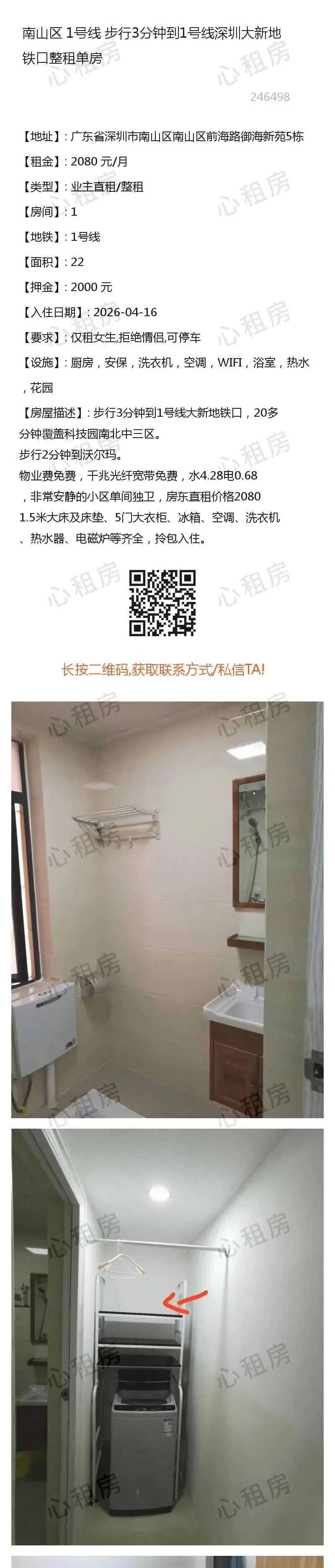 深圳租房黑房东找房子罗湖合找室友合租短租深租房科技园深大豆瓣南山租房地铁租房龙华新福田罗湖光明新区坪山新区大鹏南山豆瓣1、所有房源信息均由网友投稿,委托本公众号/心租房(homhere.cn)发布,房源的真实性、合法性由提供者负责。2、请务必核实双方身份信息(身份证)、房产权属(产权证明)、转租权利(租赁合同)等基本信息。3、请务必实地考察房源并确保与出租方提供的基本信息一致。4、切勿轻易支付定金、保证金、打赏等,建议签订《租赁合同》后再进行交易。5、双方在房屋租赁过程中产生的一切纠纷,均与本公众号/心租房(homhere.cn)无关。6、近期欺诈团伙在境外以相亲交友、租房、国际包裹等名义实施杀猪盘、诱导下载未知app等进行刷单返利等欺诈的行为较多,请先确认对方身份,保护个人隐私和财产安全。