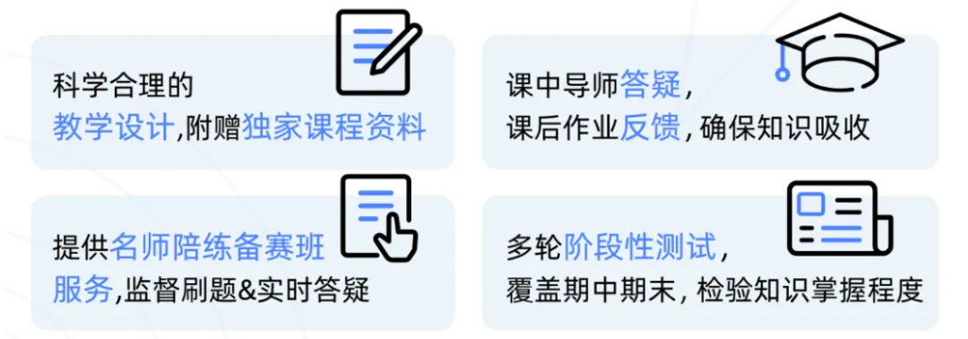 每节课配套习题+错题本,每周小测+详细解析,考前全真模拟+策略指导,确保知识吸收率超90%!