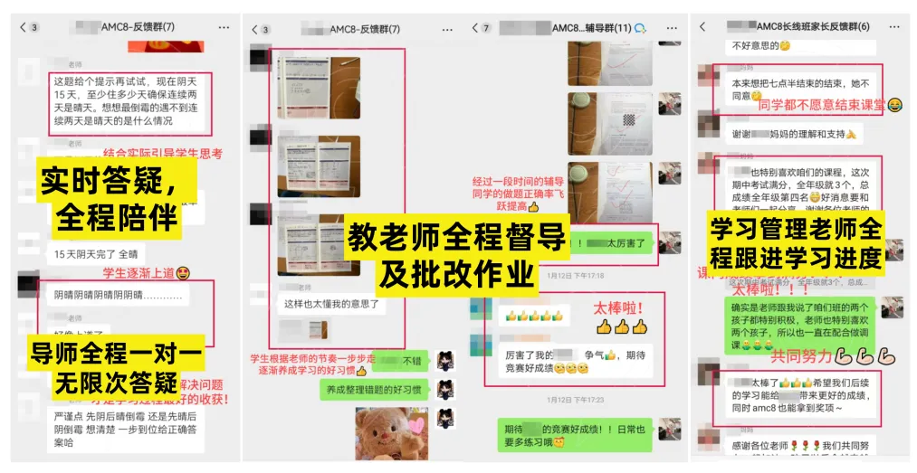 课前-课中-课后,导师全程一对一无限次答疑,助教老师全程督导及批改作业,学习管理老师全程跟进学生学习进度,会定期向家长反馈学生的学习进度和效果。