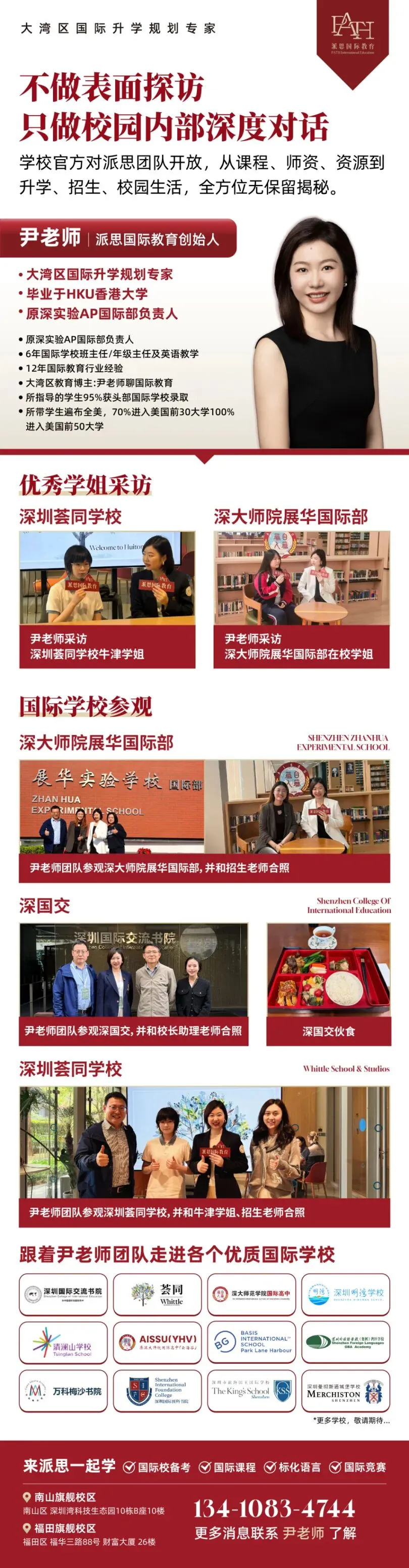 派思教育 大湾区国际升学规划专家,专注于国际学校课程,为以海外名校留学为目标的家庭,提供定制化课程辅导服务,派思资深名师专业指导,进行有效升学备考!