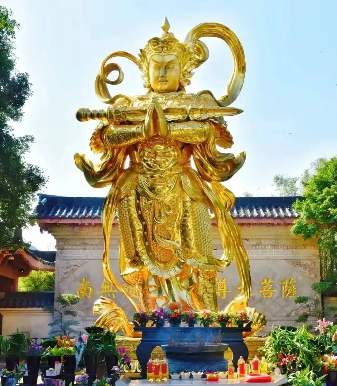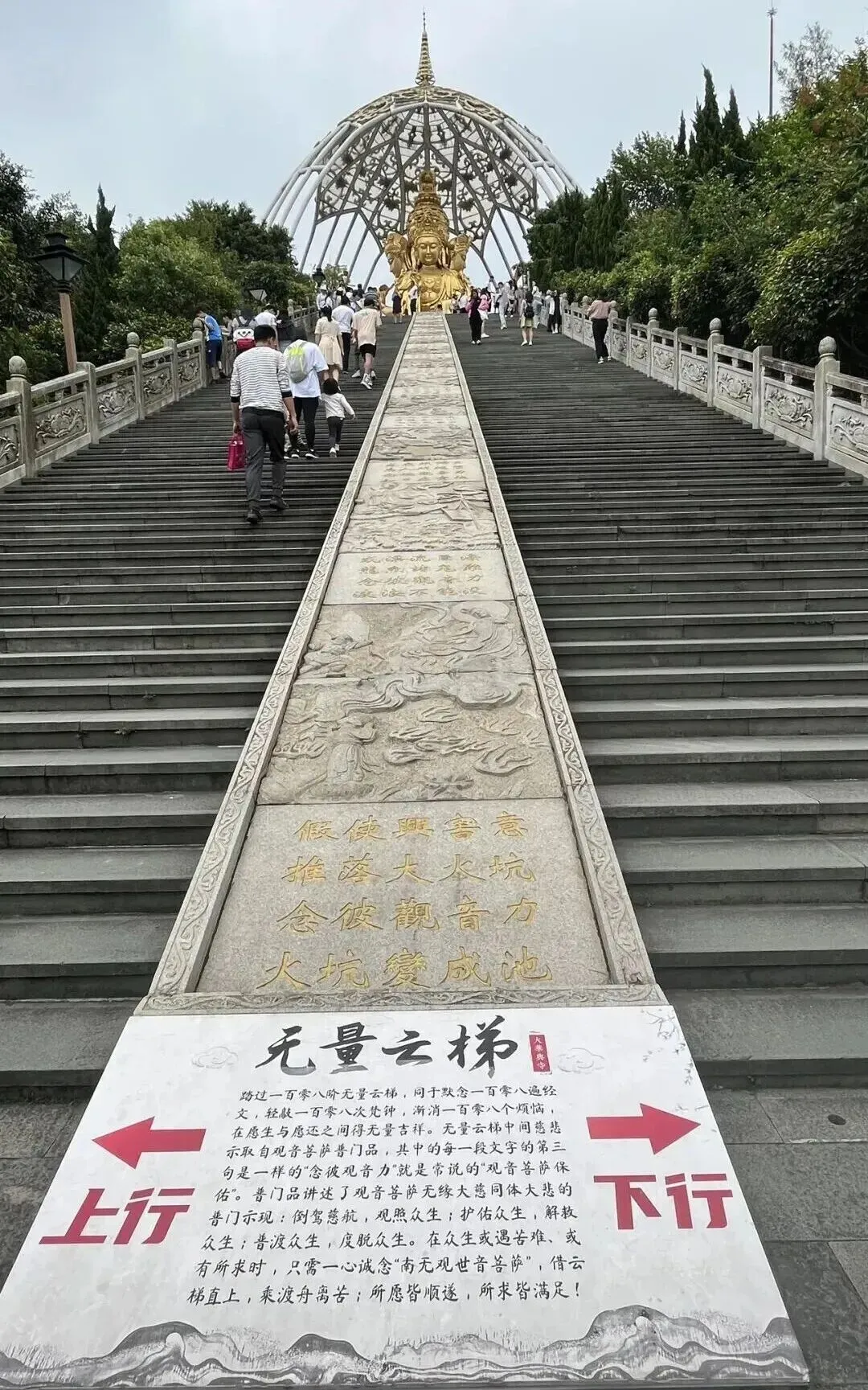走无量云梯,寺里环境清幽,还有韦驮神像、观音大殿。最显眼的就是山顶的四面金观音,高23.3米,用料十足,看着特别庄严。整条路线全程徒步衔接顺畅,从山野瀑布,走到深山古寺,一路风景切换超舒服,休闲徒步、放松散心完全没问题。