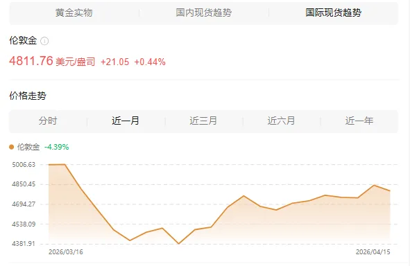 报4811.76美元/盎司
