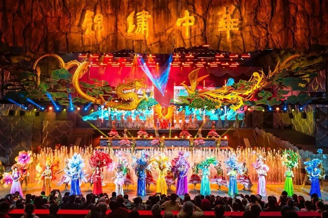 作为景区最具分量的演艺项目,《龙凤舞中华》承载着华夏五千年文明的表达。这次焕新,景区请来名家主创团队,以“龙”“凤”为主线,串起上古神话、汉唐盛世、民族风情、岭南风采六大篇章,把民族舞、杂技、川剧变脸、非遗火壶、潮汕英歌舞都融了进来。