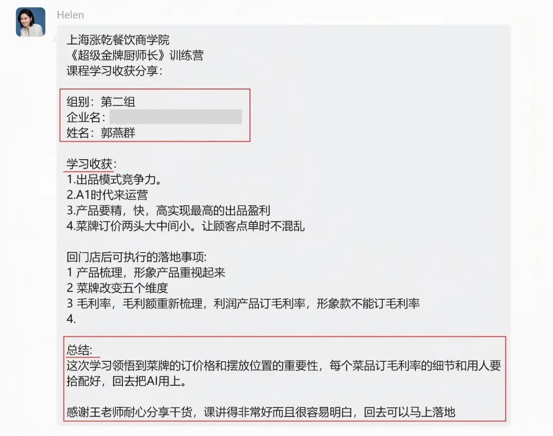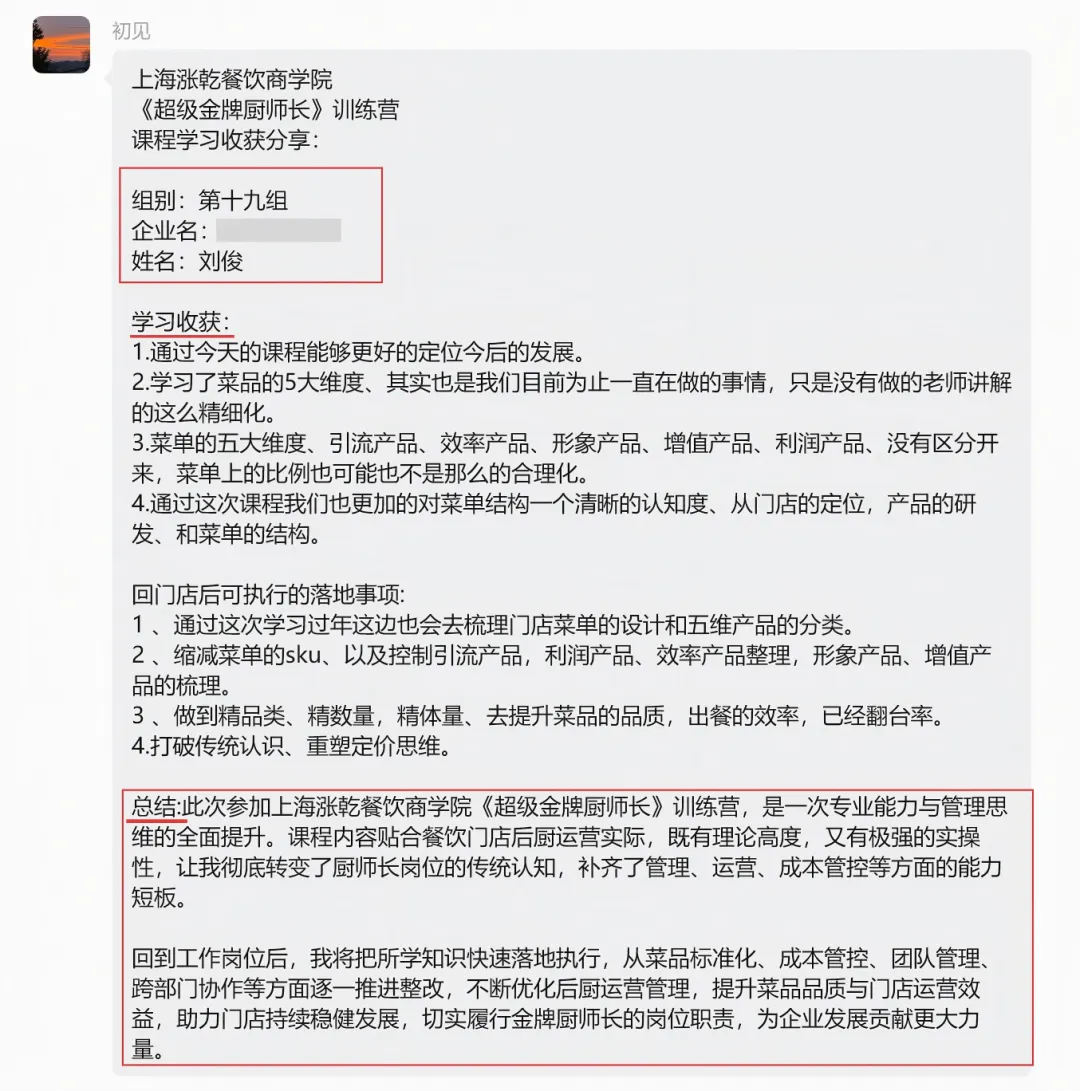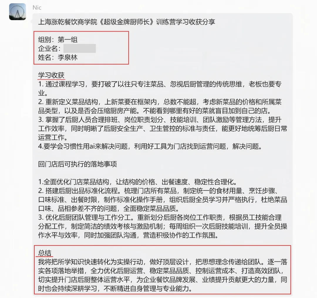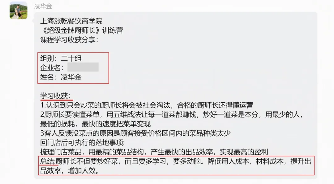 - 餐饮老板张总:“3天学完,直接带回《菜单优化方案》,回去就能落地,预计毛利能涨5%,后厨管理也有了系统方法,太值了!”