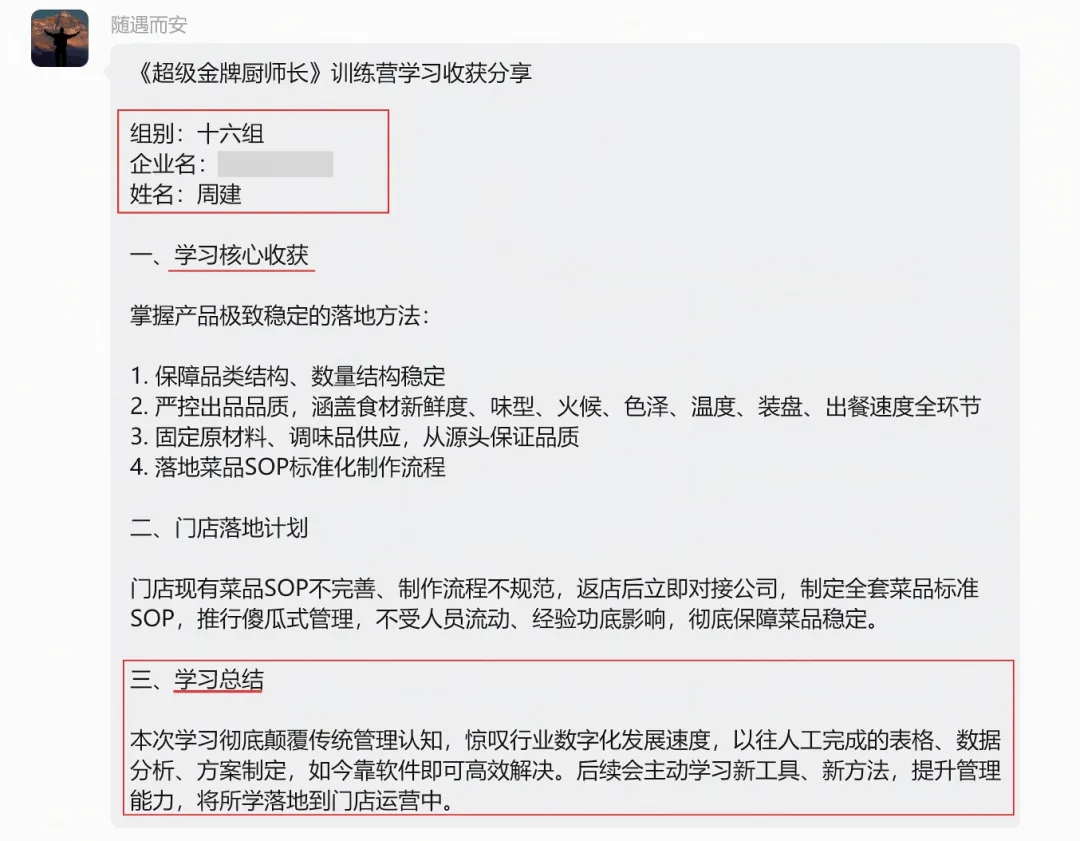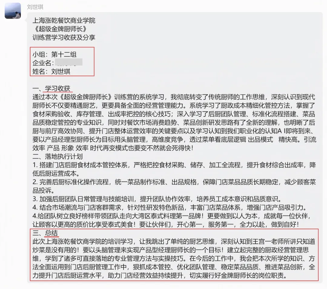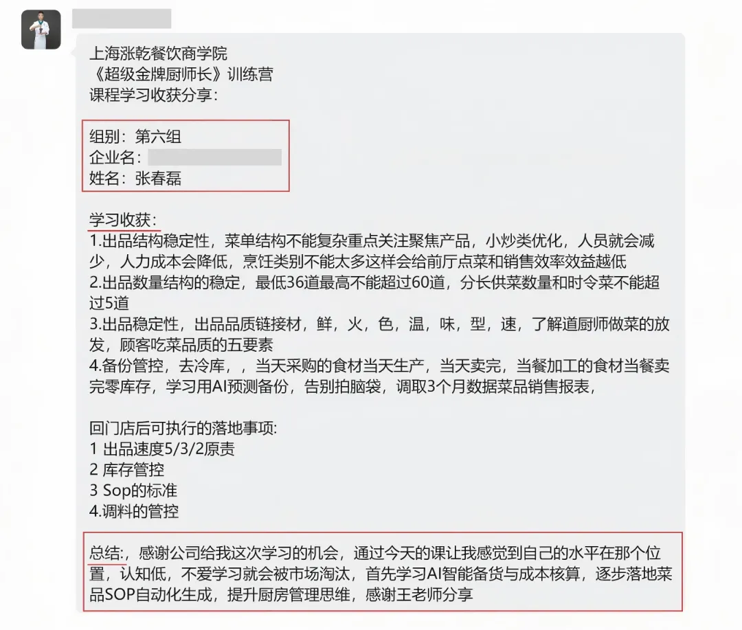- 厨师长李厨:“以前只懂做菜,现在懂了成本、数据、AI 管理,终于明白怎么当门店利润经理,职业路一下子清晰了!”