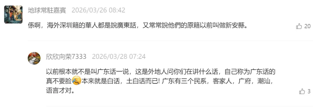 无论走多远,乡音不改,故土难忘。海外的深圳人,始终记得自己的原籍是 “新安县”,说着一口地道的广东话,这份乡愁,跨越山海,从未改变。而关于方言的讨论,也让我们更懂深圳本土文化的多元:广府、客家、潮汕三大民系,共同构成了深圳的文化根脉。