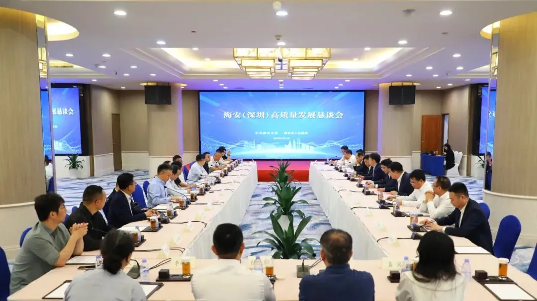 谭真指出,深圳是深度链接世界的开放枢纽,是粤港澳大湾区的核心引擎,是科技创新、产业变革与资本活力深度融合的战略高地。海安将主动对接深圳及大湾区资源,持续深化全方位、多层次、宽领域的务实协作,携手打造协同联动的制造高地、活力迸发的科创高地、近悦远来的投资高地。他真诚希望深圳相关企业与海安开展多形式的战略合作,助力两地制造业协同升级;期盼深圳高校院所、行业学会、技术专家,带领科创人才项目落户海安,强化产学研协同创新,以创新变量释放发展增量;期待与深圳各类优秀投资机构、基金管理团队深化合作,共同引育优质项目,做强资本市场“海安板块”,实现产业升级与资本增值的双向共赢、共同发展。