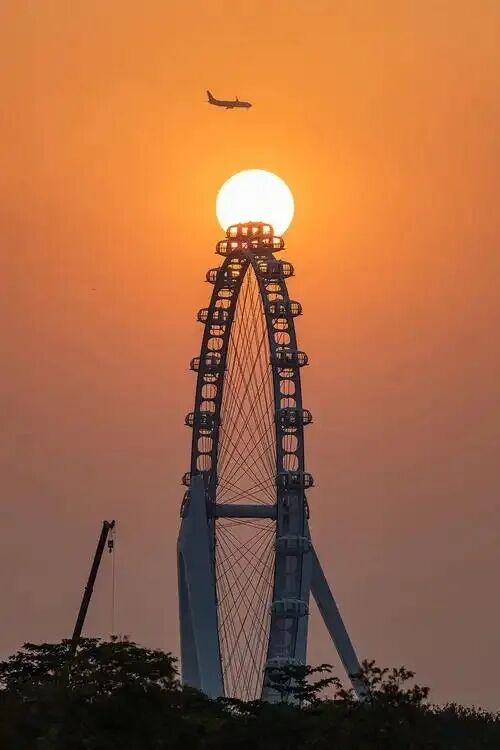 艺术隧道出口:仰拍摩天轮 + 灯带