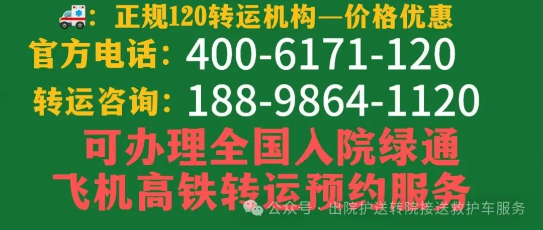 ‘救护车转运’长途跨省转运病人新生儿、骨折、重症、危重症患者,行动不便者复查,转院、转诊、跨省回家,我们都能专业承接。专业救护车配备先进设备,随车医护经验丰富,全程守护生命安全。无论何时何地,只要您有需求,拨打 [4006171120]即可预约。我们费用透明合理,详细费用等您咨询,为您提供安心、可靠的转运服务。救护车出租转运电话:4006171120微信客服:18898641120官方网站:www.120che.cn