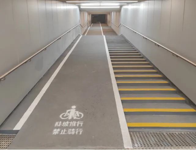 在深南大道华富人行通道4、5、8号出入口,坡道已经进行了改造。过去,这几处出入口的坡道宽度不足,非机动车推行十分不便,不少市民宁愿冒险骑上机动车道绕行。