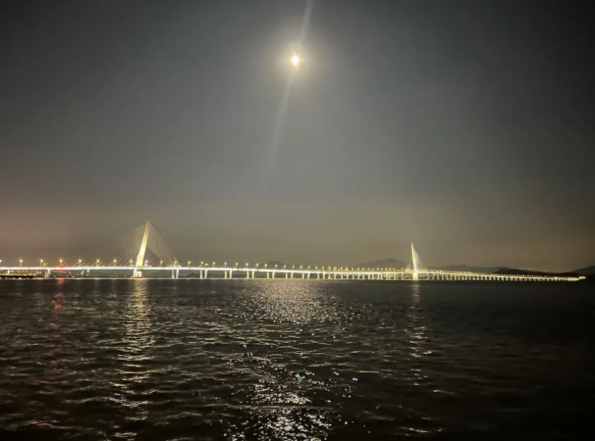 长长的桥如一条银色绸带横卧海面,桥灯落进浪涛里,碎成了满海的星光。月光铺在水面,似一匹锦缎,将白日里的所有喧嚣轻轻揉碎,缓缓沉进海韵里。远处的城市楼群依旧灯火通明,一扇扇窗棂里,藏着无数普通人的滚烫梦想。我倚在栏杆上,任海风拂过脸颊,想起清晨扫街的环卫工人,想起工地上独行的建设者,想起树荫下捧着盒饭的笑脸,风里忽然多了些暖意。