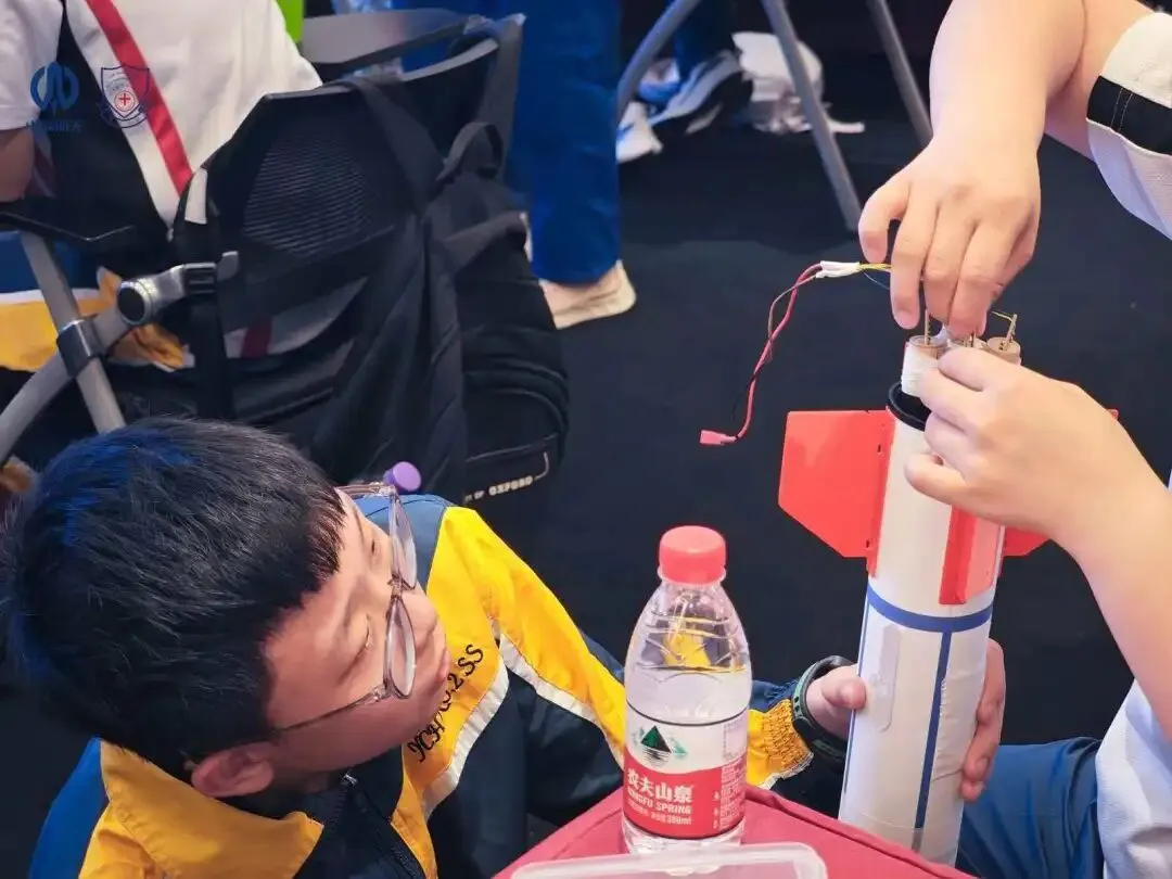 组装火箭的环节,每组5人,分工如流水线般高效。有人负责箭体拼装,有人校准尾翼,有人安装发动机,有人测试降落伞。