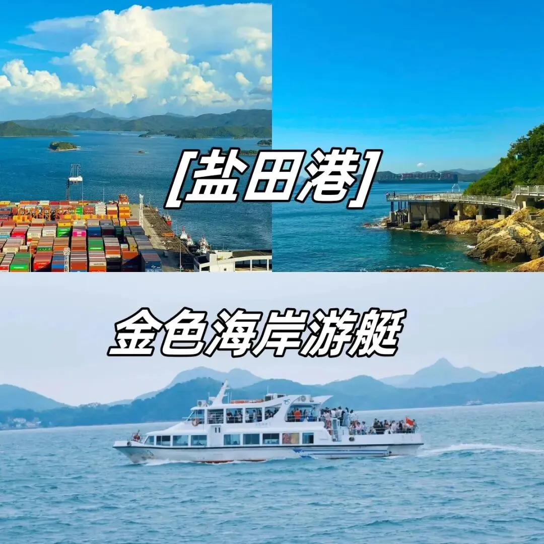 前往盐田金色海岸码头乘【金色海岸游艇】(约 70 分钟,不含船票 130 元/人)环海游 览香港岛: 想体验乘风破浪的刺 激吗?还是想短时间近距离欣赏 深圳的海滨风光?这儿游艇统统 满足你。游艇每天出发班次众多,站在豪华游轮的甲板中,享受海风 吹拂的同时,深圳盐田优美的山海 风光一览无余,隔岸的香港近在眼 前。在一个小时愉快的旅程中,盐田港、大小梅沙、南澳渔港、沙头角、中英街等深 圳标志性景点和街区将以另一个视角在你眼前一一呈现。