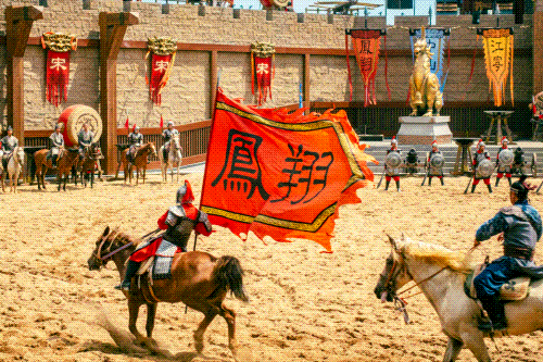 中餐后前往校场观看【岳飞枪挑小梁王】马战实景剧,到九龙桥西南水面观看【大宋・东京保卫战】