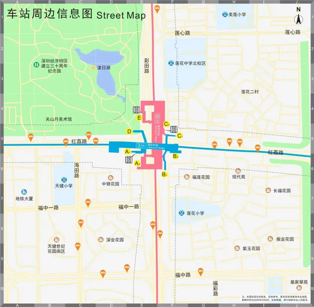 彩田路东侧(北)、莲花一村、莲花中学(北校区)、美莲小学、莲花二村、深业上城
