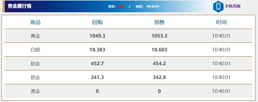 *以上价格仅是某个时间的盘价截图,最终请参考融通金六约实时报价盘为准。