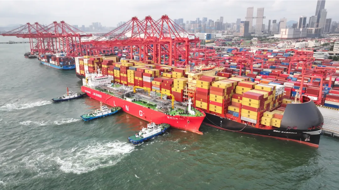 ● 全球最大的LNG运输加注船“海洋石油301”轮首次造访深圳妈湾智慧港,为“地中海塞布丽娜”外轮加注液化天然气。