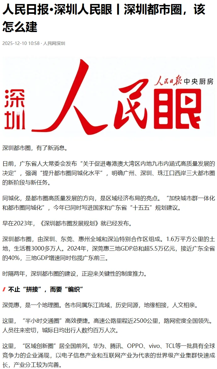 2025 年 12 月,广东省人大常委会发布《关于促进粤港澳大湾区内地九市内涵式高质量发展的决定》,明确提出 “推动深圳都市圈成立共同规划委员会,实现规划的共同编制、共同认定、共同实施”。这一举措,若能落地,将有效解决深莞惠都市圈规划协同性不足的问题 —— 共同规划委员会将拥有省级层面的协调权限,可直接决定跨市地铁的线位走向、出资比例、运营规则等核心事项,避免三市的 “各自为政”。