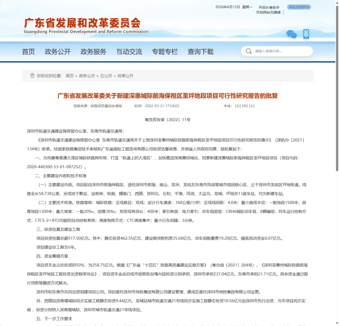 深圳在跨市轨道交通项目上的出资,并非 “口头承诺”,而是有实际的资金投入为证: