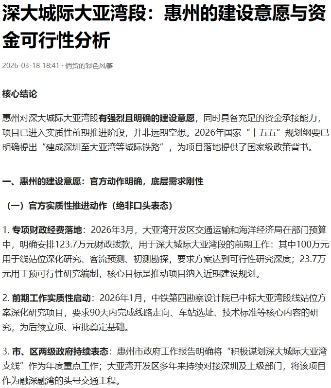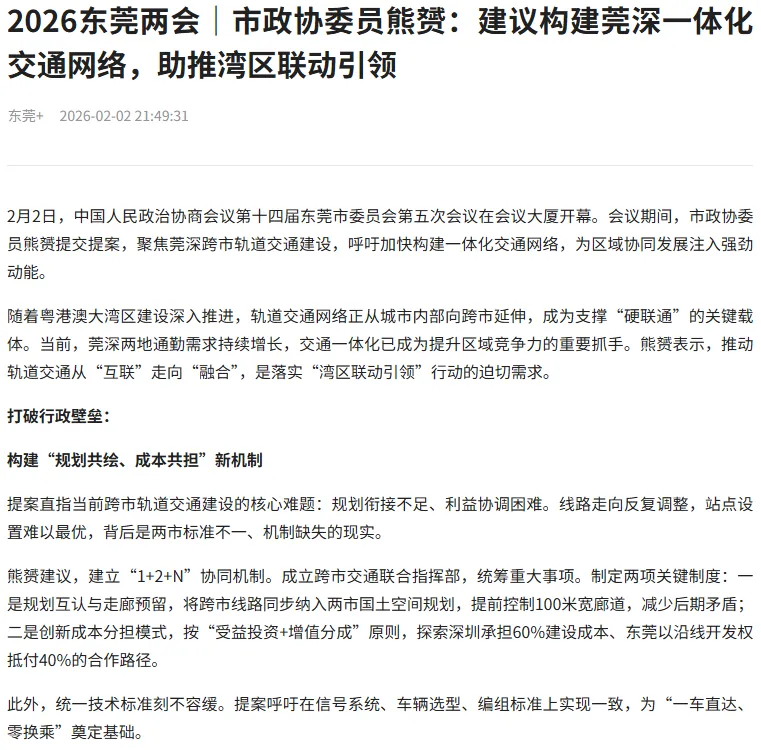 “不愿出钱” 是伪命题:深圳在跨市轨道交通项目上承担了远超自身份额的资金 —— 例如,深惠城际承担了 91% 的资本金,深圳段线路的建设资金全部由深圳财政承担,且在深理工站预留了与东莞 1 号线的同站台换乘条件,成本约 1.2 亿元也由深圳全额承担。深圳甚至主动启动了跨市轨道的前期研究工作,投入专项资金用于方案设计和客流预测。项目停滞的核心原因,是东莞、惠州未达国家审批标准,或因运营亏损分担、土地增值收益归属等问题,导致谈判破裂;广州模式不可复制:广佛地铁的成功,是特殊历史阶段的政策红利与省会城市行政统筹权限的结合 —— 其审批标准、财政支持与协调机制,均不适用于深莞惠都市圈。深莞惠都市圈的跨市地铁项目,需在 2018 年国办发 52 号文的高标准下,通过三市的平等协商推进,而非广州式的 “省级统筹”;困境是多因素叠加的结果:深莞惠跨市地铁的困境,是国家审批门槛约束、城市空间结构与客流特征限制、利益分配博弈及行政协调机制差异的综合结果 —— 每一层因素,都不是深圳单方面能解决的。例如,惠州的市区常住人口未达标,这是惠州自身的发展阶段问题,而非深圳的责任;东莞的 “强镇弱市” 结构,导致客流强度不足,这也是东莞自身的城市结构问题,而非深圳的问题。计划单列市的财政体制:深圳作为计划单列市,财政收支直接与中央分成,无需向广东省上缴收入 —— 这并非深圳 “小气”,而是国家赋予的法定权限。深圳对跨市地铁的出资,完全是 “自主自愿” 的市场行为,而非法定的 “省级统筹义务”。例如,深圳在深惠城际项目中承担 91% 的资本金,并非因为 “广东省要求”,而是因为深圳认为该项目符合自身的都市圈发展战略;跨市基础设施建设的规律:跨市地铁的建设,需要三市的协同配合 —— 不仅需要资金的投入,更需要规划的协同、审批的同步、利益的共享。若仅从 “道德绑架” 的角度指责深圳,而忽视东莞、惠州的自身问题与国家政策的约束,既不公平,也不利于问题的解决。例如,惠州的市区常住人口未达标,这是客观事实,而非深圳的 “不愿付出” 所致。同城化,还需要人才流动,三地社保不统一,一般的人才不敢随便换城市。同城化,还需要教育体系统一,大多数人都关心孩子的教育;同城化,还需要轨道连接,深大城际是个断头路,有深无大,说到底,难,纸面上的都市圈,没有一个人当头,事情永远停留在协商阶段。所有的基建互联互通都是深圳热,相邻城市并不热衷。不是连不起来,就是根本没有规划。看看跟广州的连接,不管是城轨还是地铁,周边城市都非常热心。关键是政府要放权深圳,否则什么都是空谈,错失都市圈快速发展的机遇。
