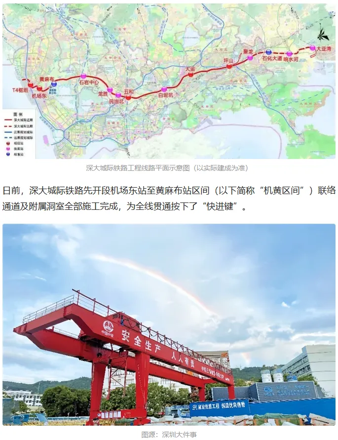 地铁 14 号线:作为深圳东部的 “快线骨干”,全长 50.34 公里,采用全地下敷设方式,设计时速 120 公里 / 小时,日均客运量达 53 万人次,是连接深圳福田中心区与东部坪山新区的核心线路。其终点站沙田站距离深惠边界仅 2 公里,且在规划阶段就已预留了东延至惠州惠阳的接口 —— 包括轨道线路的延伸条件、车站换乘空间的预留,甚至提前完成了与惠州段衔接的地质勘探工作;地铁 6 号线支线:全长 6.13 公里,起自深圳北站枢纽,终至深莞边界的深理工站,是连接深圳龙华区与东莞黄江镇的关键线路。该线路不仅物理上修至边界,还在深理工站预留了与东莞 1 号线的同站台换乘条件 —— 乘客无需上下楼层,即可直接换乘东莞段线路,这一设计是为了最大化提升跨市通勤效率;地铁 10 号线东延深圳段:全长 2.9 公里,设 1 座车站,2023 年 7 月纳入《深圳市城市轨道交通第五期建设规划(2023-2028 年)》,2024 年 7 月获国家发改委批复,2025 年已启动前期设计,计划铺至深莞边界。该线路是连接深圳龙岗平湖与东莞凤岗的核心线路,深圳段的工程设计已完全考虑了与东莞段的衔接需求;地铁 11 号线北延深圳段:全长 11.5 公里,起自深圳宝安碧头站,终至深莞边界,已获国家发改委批复,计划 2028 年前建成。该线路设计时速 120 公里 / 小时,将连接深圳宝安国际机场与东莞长安镇,是深圳西部对外辐射的重要通道。此外,深圳地铁 11 号线已在碧头站预留好与东莞 3 号线的衔接换乘条件,6 号线也已在深理工站完成与东莞 1 号线的换乘预留 —— 这些细节,都证明深圳在规划阶段就已将跨市衔接纳入考量,而非 “半途而废”。