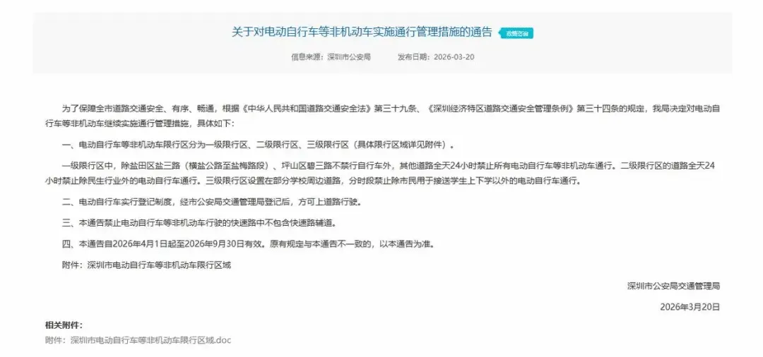 2026 年 4 月 1 日,深圳电动车新规正式落地,引发了社会各界的广泛关注。